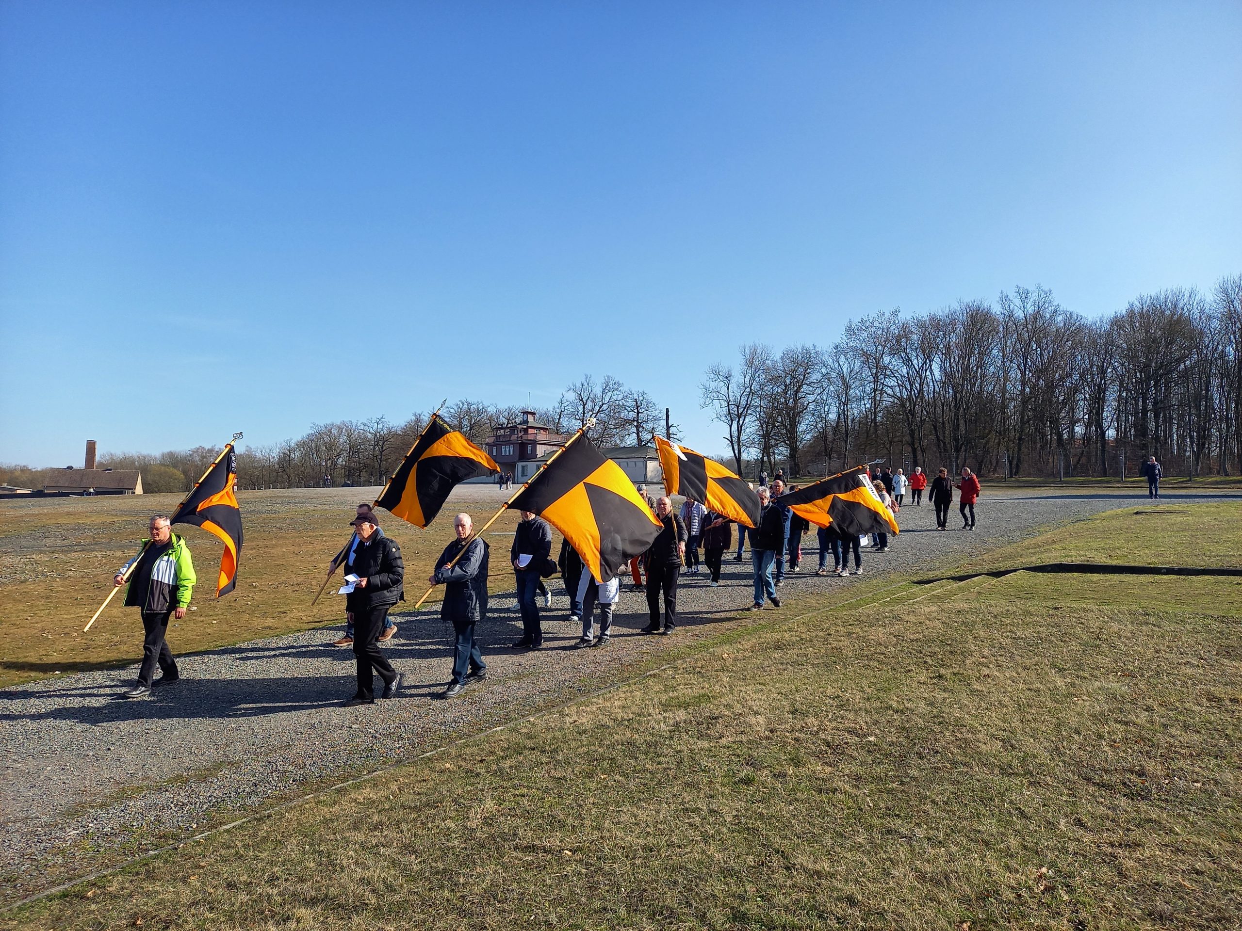 Mitglieder aus sieben Thüringer Kolpingsfamilien und weitere Christen trafen sich am 3. Fastenwochenende wieder zu ihrer traditionellen Sühneandacht im ehemaligen KZ Buchenwald. Bei diesmal strahlendem Frühlingswetter zogen die Kolpingfreunde aus dem Eichsfeld sowie der thüringischen Diaspora betend und singend über das weitläufige Gelände der heutigen Gedenkstätte und gedachten an fünf Kreuzwegstationen mit Lebenszeugnissen und Fürbitten umgebrachter KZ-Opfer. Die ergreifenden Texte dazu hatte Alt-Diözesanpräses Suitbert Schellenberg vorbereitet, während sie dann an den jeweiligen Stationen von Kolpingmitgliedern und Priestern vorgetragen wurden.